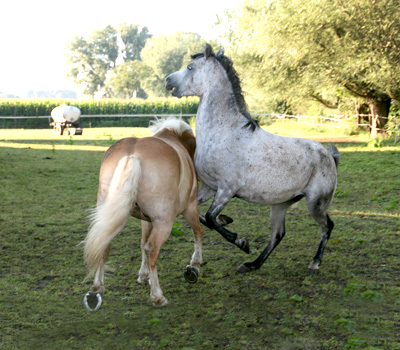 Bei uns haben die Pferde das ganze Jahr die Möglichkeit sich mit und in der Herde frei zu bewegen und dabei kontinuierlich Futter aufzunehmen. Durch unsere großzügige Freifläche, mit unterschiedlichen Stationen, werden die Pferde animiert das Gelände zu bewandern. Hierdurch wird ihrem natürlichen Bewegungsdrang Rechnung getragen.